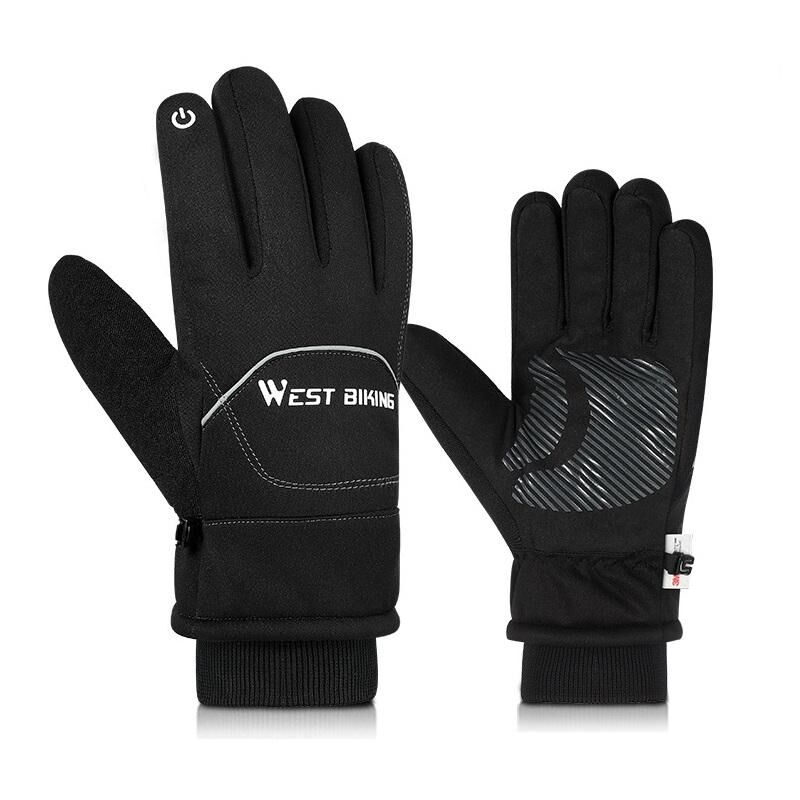 WEST BIKING YP0211221 Winter Warm Fleece Riding Gloves Non-Slip Waterproof Touch Screen Gloves, Size: XL(Black) (WEST BIKING)
