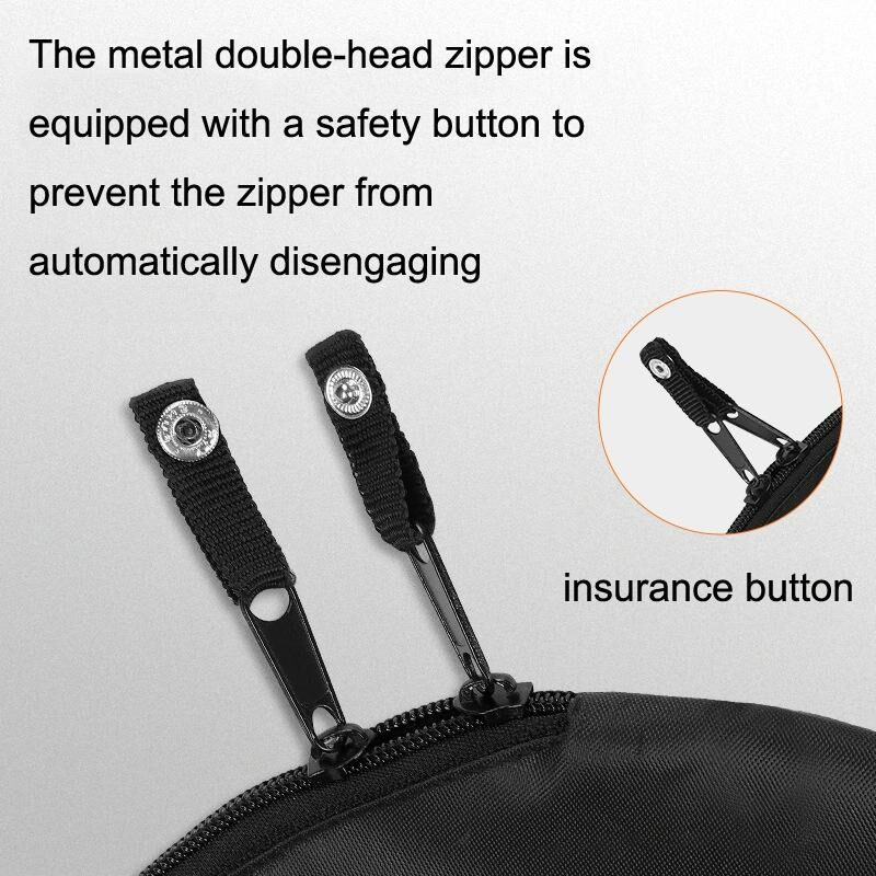4. Το μεταλλικό διπλό φερμουάρ διαθέτει κουμπί ασφαλείας για να αποτρέψει το αυτόματο άνοιγμα του φερμουάρ.