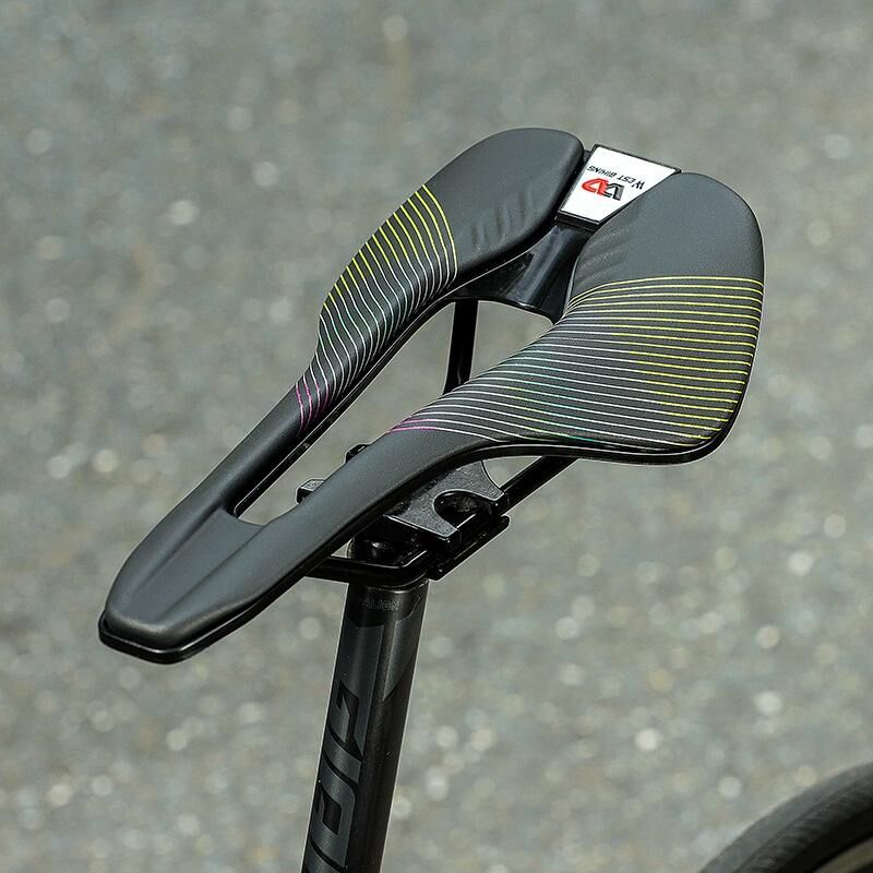 3. The seat cushion is ergonomically designed, hollow and breathable, and the wide tail ensures comfort and does not affect the force; the head tilts down to solve the unspeakable pain of men's long-distance riding, and it will not clamp the gear.