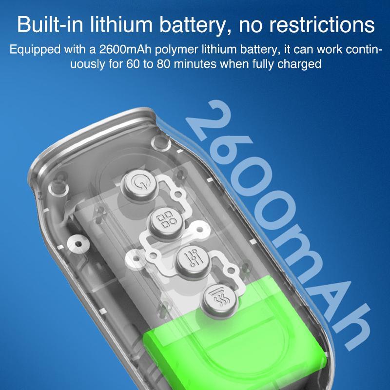 5. Built-in 2600mAh large-capacity lithium battery, can work continuously for 60-80 minutes when fully charged.
