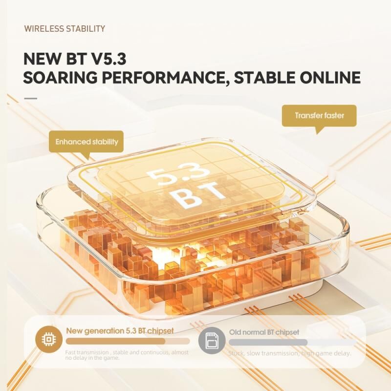 4. Bluetooth 5.3 chip: Χρησιμοποιώντας την έκδοση Bluetooth 5.3, μπορείτε να ακούτε κατά βούληση σε απόσταση σύνδεσης 10 μέτρων.