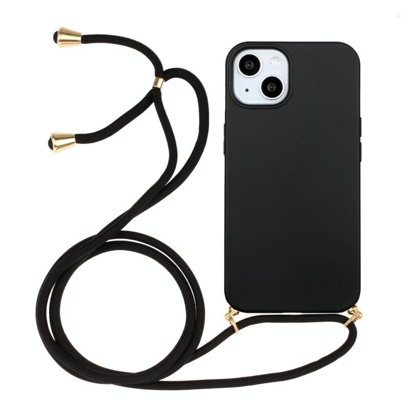 Υλικό από άχυρο σίτου + Προστατευτική θήκη TPU με κορδόνι για iPhone 14 Max (Μαύρο)