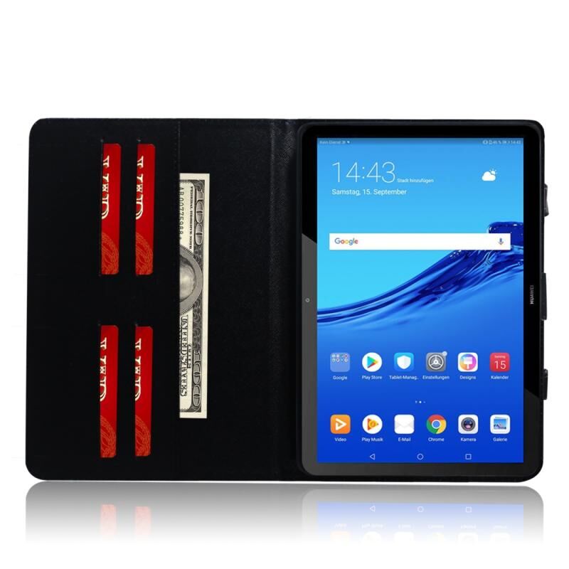 Θήκη δέρματος οριζόντιας ανατροπής με σχέδιο λευκής τίγρης για Huawei MediaPad T5, με βάση στήριξης & υποδοχή κάρτας & πορτοφόλι.