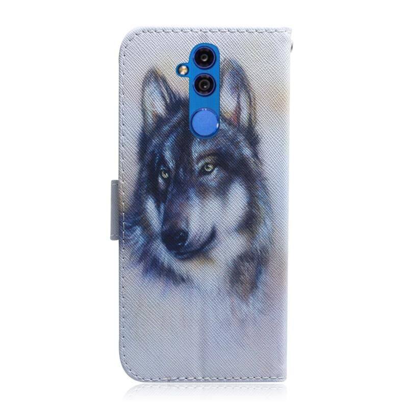 Θήκη δέρματος με σχέδιο λευκού λύκου, οριζόντιο άνοιγμα, για Huawei Mate 20 Lite, με βάση στήριξης & θήκες καρτών & πορτοφόλι.