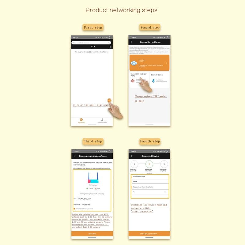5. Οδηγίες δικτύωσης: βεβαιωθείτε ότι το τηλέφωνο έχει συνδεθεί στο δίκτυο WiFi, πρέπει να είναι ζώνη 24Ghz, η ζώνη 5Ghz δεν μπορεί να αντιστοιχιστεί, εάν το router σας έχει συνδυασμένη ζώνη 2.4Ghz και 5Ghz, επαναδιαμορφώστε το router, διαχωρίστε το, επιλέξτε τη ζώνη 2.4G για αντιστοίχιση