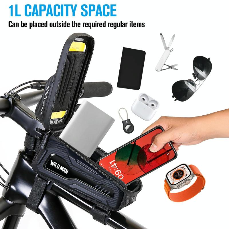 WILD MAN M20 Αδιάβροχη Τσάντα Ποδηλάτου με Θήκη Κινητού & Οθόνη Αφής (Γκρι)