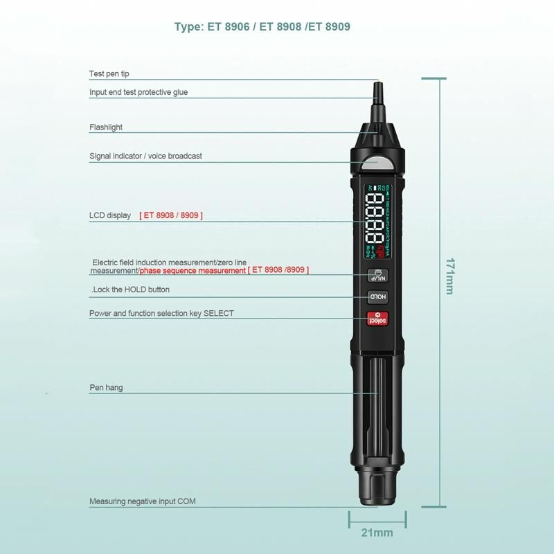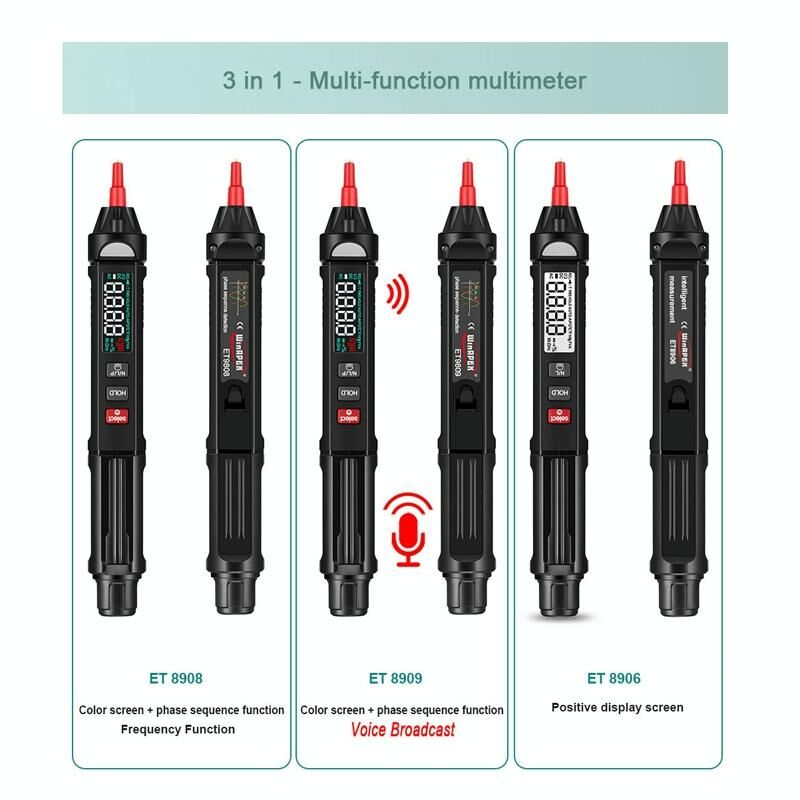 1. 3-in-1 multi-function multimeter, integrated digital multimeter/voltage tester/phase sequence (phase sequence function only ET8908/ET8909)