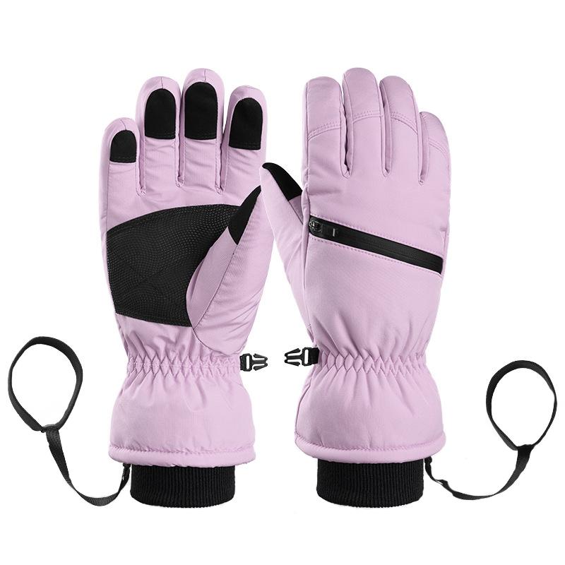 Winter Padded Ski Finger Gloves Outdoor Windproof Warm Sports Gloves, Size: L(Light Purple)