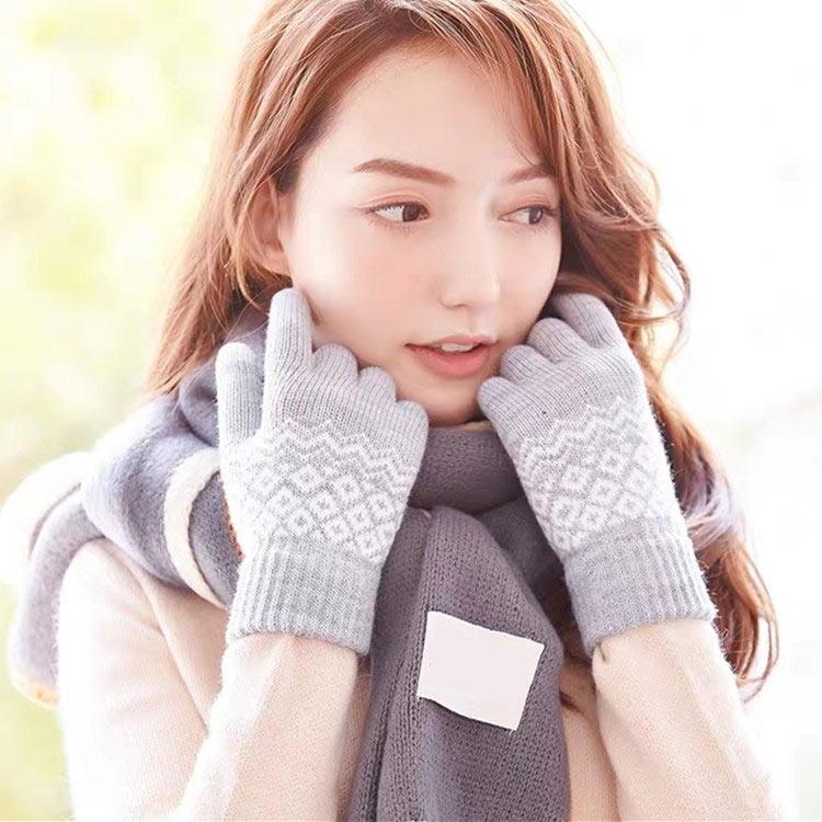 Winter Touch Screen Gloves Women Men Warm Stretch Knit Mittens Imitation Wool Thicken Full Finger Gloves(C-Black)