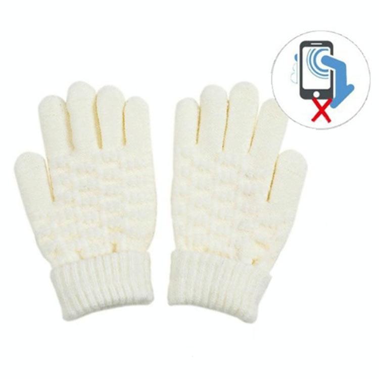 Winter Touch Screen Gloves Women Men Warm Stretch Knit Mittens Imitation Wool Thicken Full Finger Gloves(Kids White)