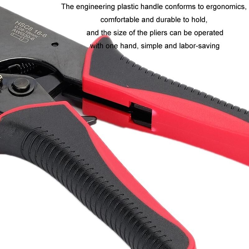 2. The pliers body is forged with special alloy steel, and the refined crimping module has a hardness of up to HRC55, high hardness, good toughness, and longer service life