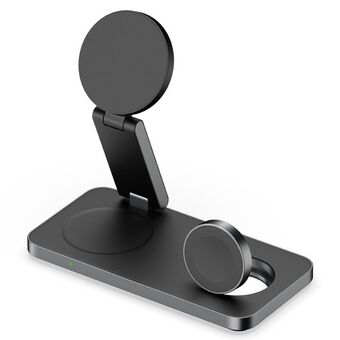 T15 3 in 1 Magnetic Magsafe Wireless Charger Folding Charging Stand For iPhone / iWatch / AirPods(Black)