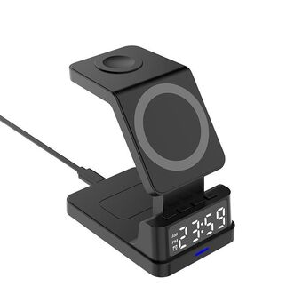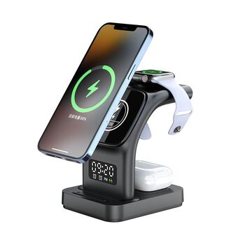 15W 4 in 1 Magnetic Clock Desktop Vertical Wireless Charger (Black)