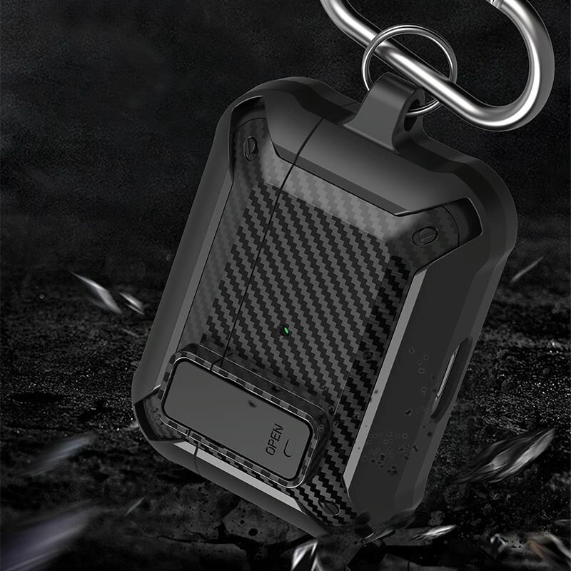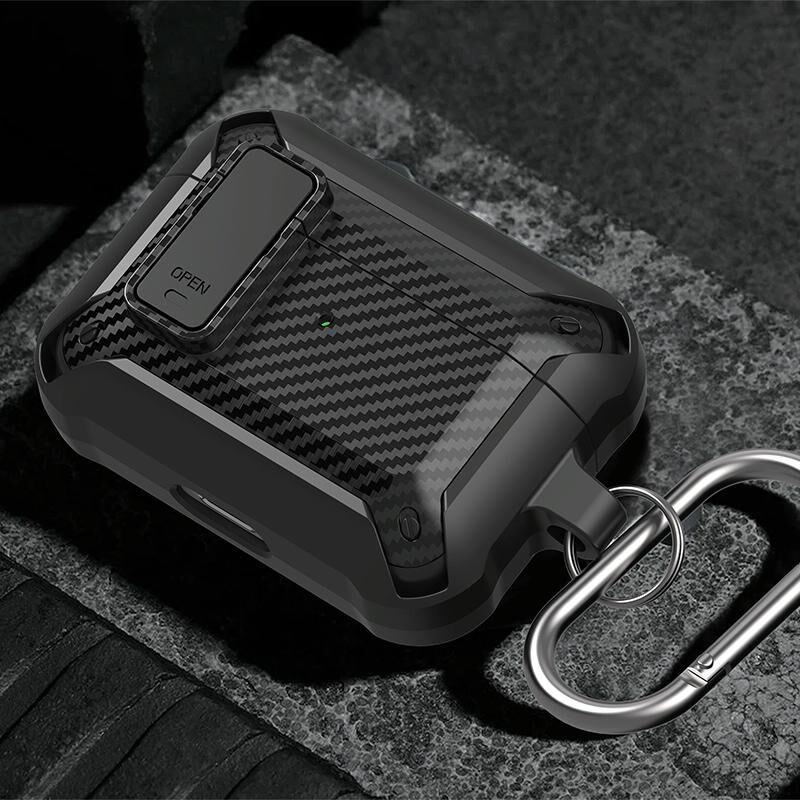 Wireless Earphones Shockproof Bumblebee Carbon Fiber Protective Case with Switch For AirPods Pro(Blue)