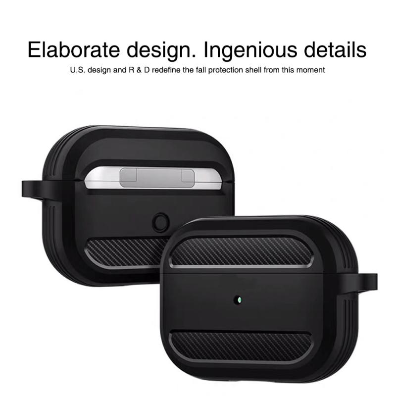Wireless Earphones Shockproof Carbon Fiber Armor TPU Protective Case For AirPods Pro(Black)