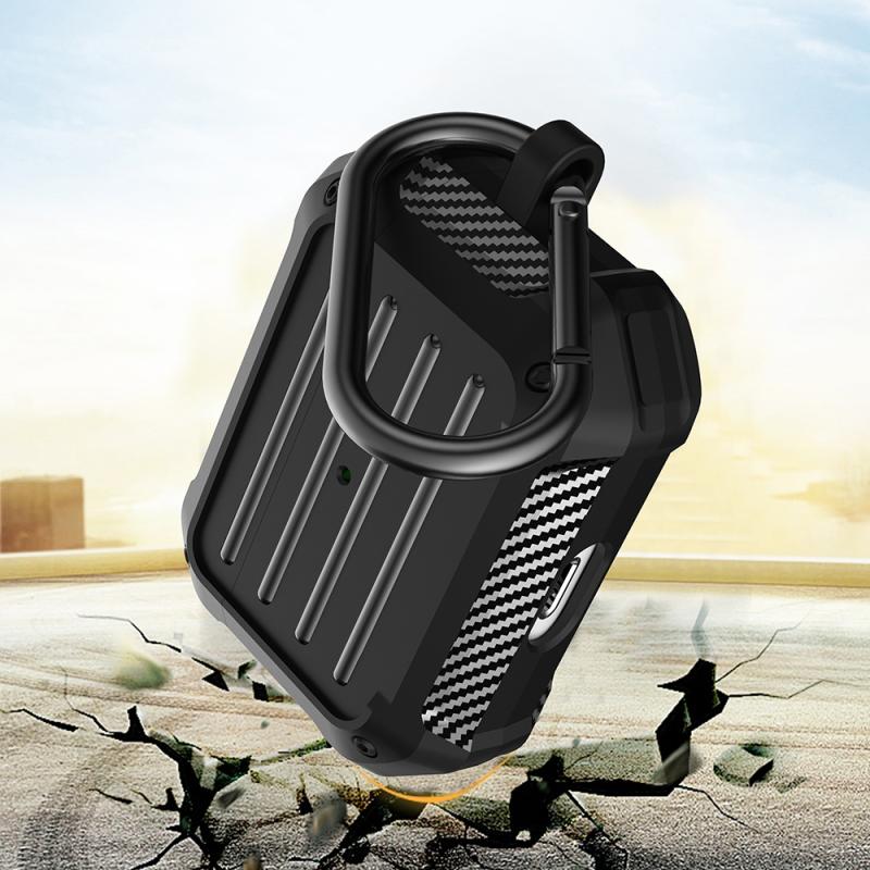 Wireless Earphones Shockproof Carbon Fiber Luggage TPU Protective Case For AirPods Pro(Grey)