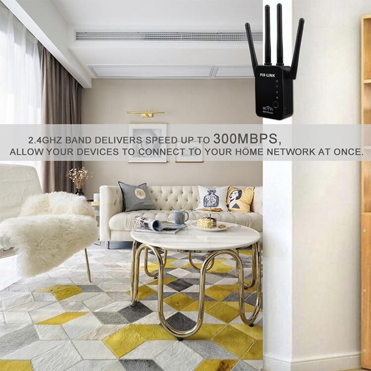 Ασύρματος Επαναλήπτης/Δρομολογητής WiFi με 4 Κεραίες, EU Plug (Μαύρο)