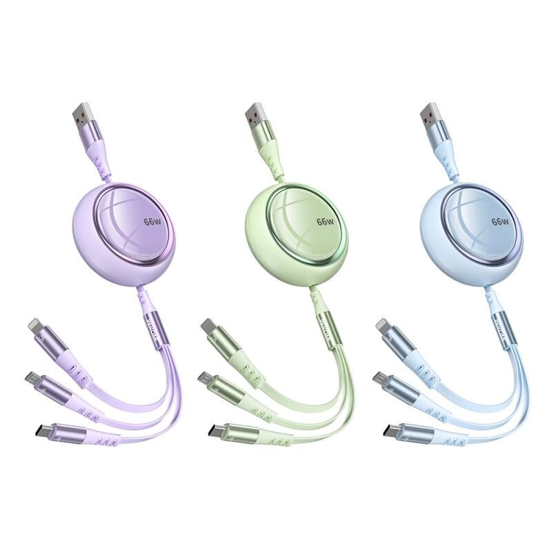 WK WDC-05 66W 3 σε 1 USB σε 8 ακροδέκτες + Micro USB + USB-C / Type-C Ανασυρόμενο καλώδιο δεδομένων γρήγορης φόρτισης, Μήκος: 1.2m (μωβ) (WK)