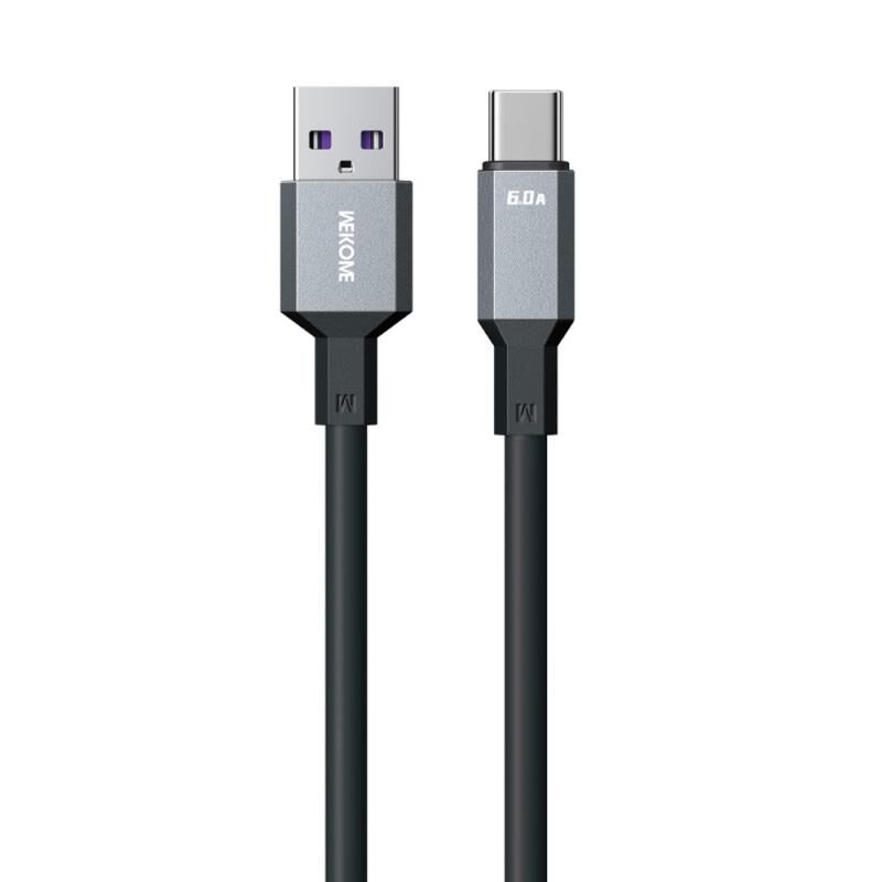 Καλώδιο δεδομένων σιλικόνης WK WDC-17 6A USB σε USB-C/Type-C, Μήκος: 1,2μ (Μαύρο) (WK)