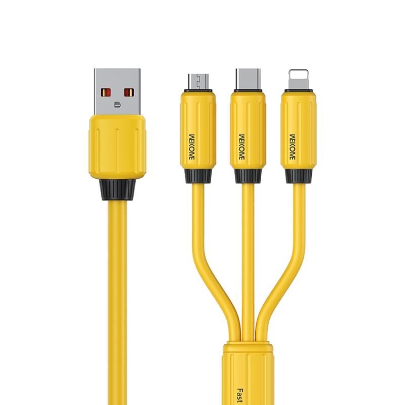 WK WDC-30 Ελαστική σιλικόνη 1.2m 66W USB σε 8 Pin / Type-C / Micro USB καλώδιο γρήγορης φόρτισης δεδομένων (κίτρινο) (WK)
