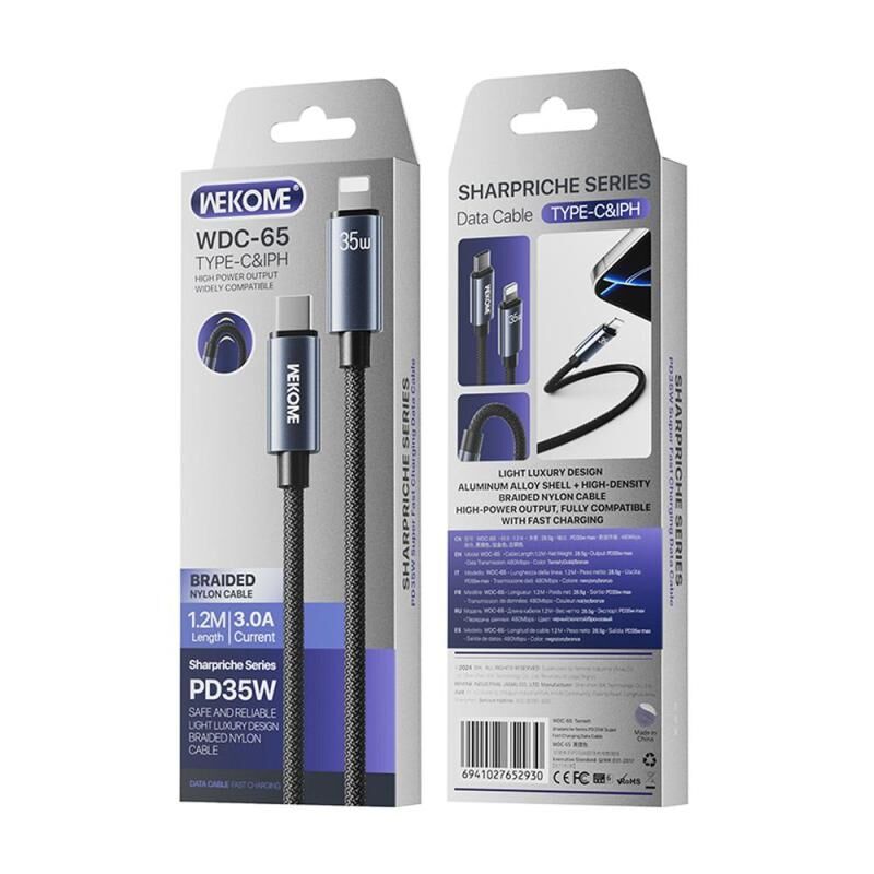 WK WDC-65 PD35W Type-C to 8 Pin Fast Charging Data Cable, Length: 1.2m(Black) (WK)
