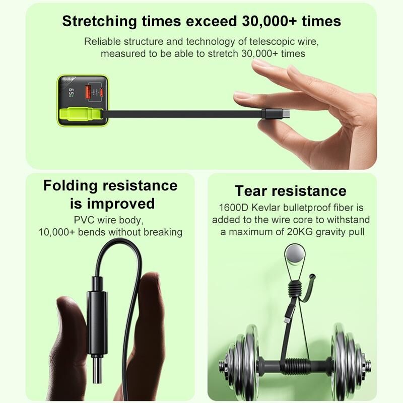 5. Ανασυρόμενο καλώδιο επιβραδυντικό φλόγας με διεπαφή Type-C, ανθεκτικό στη φθορά και ανθεκτικό