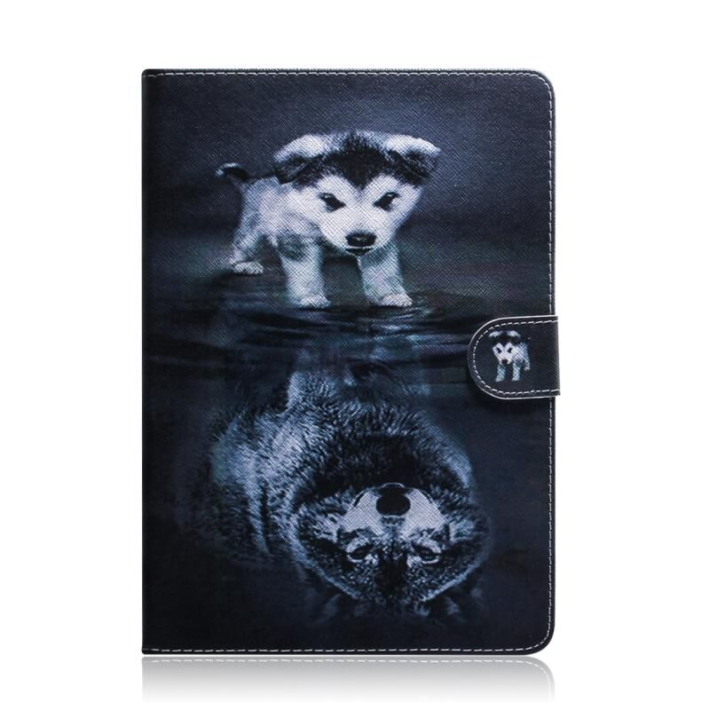 Θήκη Δερμάτινη με σχέδιο Λύκου και Σκύλου, Οριζόντια Αναδίπλωση για Galaxy Tab A 10.1 (2019) T510 / T515, με Στήριξη & Θήκη Καρτών & Πορτοφόλι.