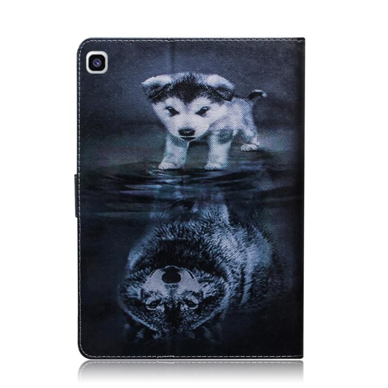 Θήκη δέρματος με σχέδιο λύκου και σκύλου, οριζόντια αναστροφή, για Galaxy Tab A 8 (2019) / P200 / P205, με βάση στήριξης & υποδοχή κάρτας & πορτοφόλι.