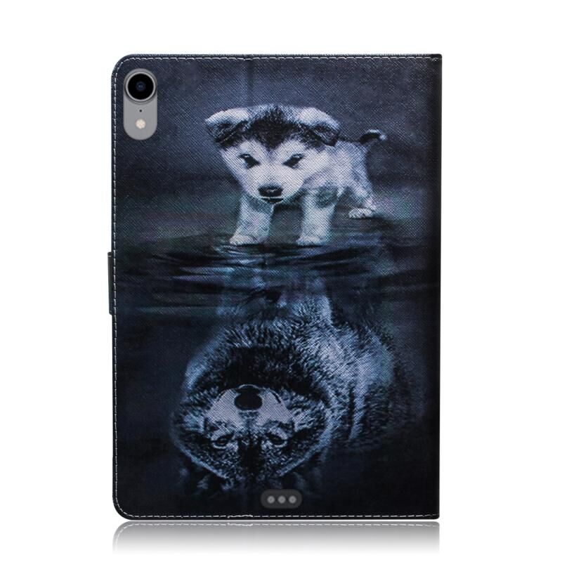 Θήκη δέρματος με σχέδιο λύκου και σκύλου, οριζόντια αναστροφή, για iPad Pro 11 ιντσών (2018), με βάση & υποδοχή κάρτας & πορτοφόλι.