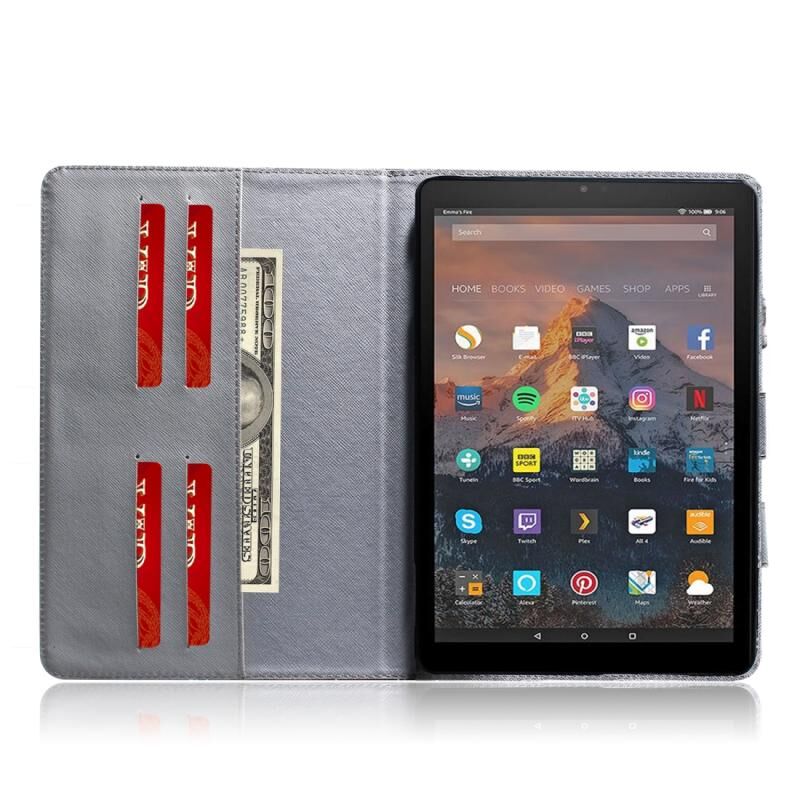 Θήκη δέρματος με οριζόντιο άνοιγμα και σχέδιο λύκου για Amazon Kindle Fire HD 10 2015/2017, με βάση & υποδοχή κάρτας & πορτοφόλι.