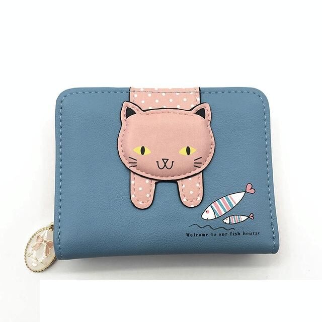 Γυναικείο Χαριτωμένο Πορτοφόλι Γάτας, Μικρό Πορτοφόλι με Φερμουάρ, Δερμάτινο Πορτοφόλι PU, Θήκη για Κέρματα και Κάρτες (Μαύρο)