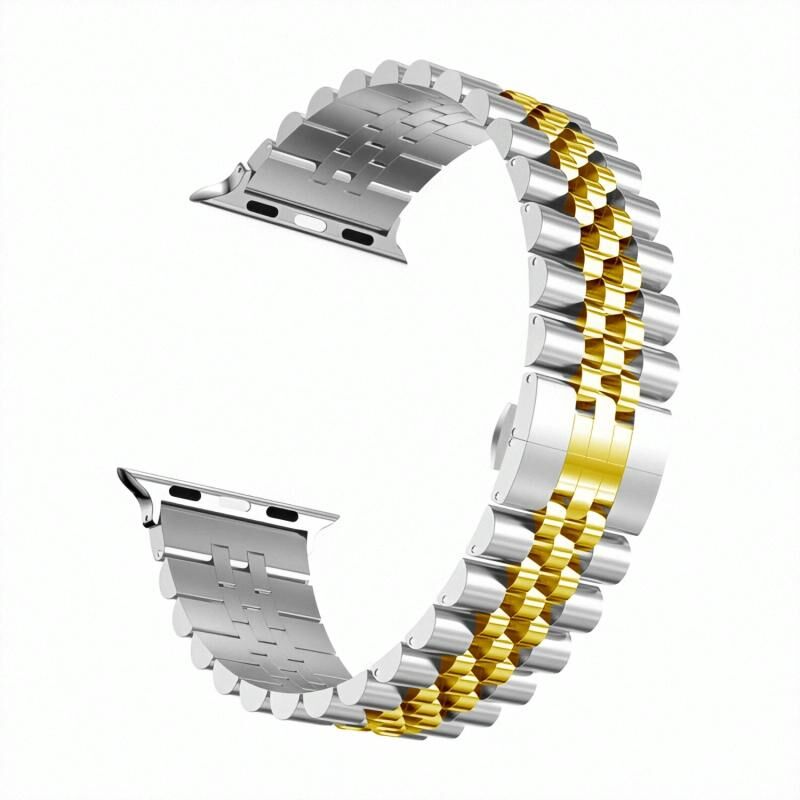 Women Five Beads Stainless Steel Watch Band Width: 20mm For Apple Watch Series 9&8&7 41mm / SE 3&SE 2&6&SE&5&4 40mm / 3&2&1 38mm(Silver + Gold)