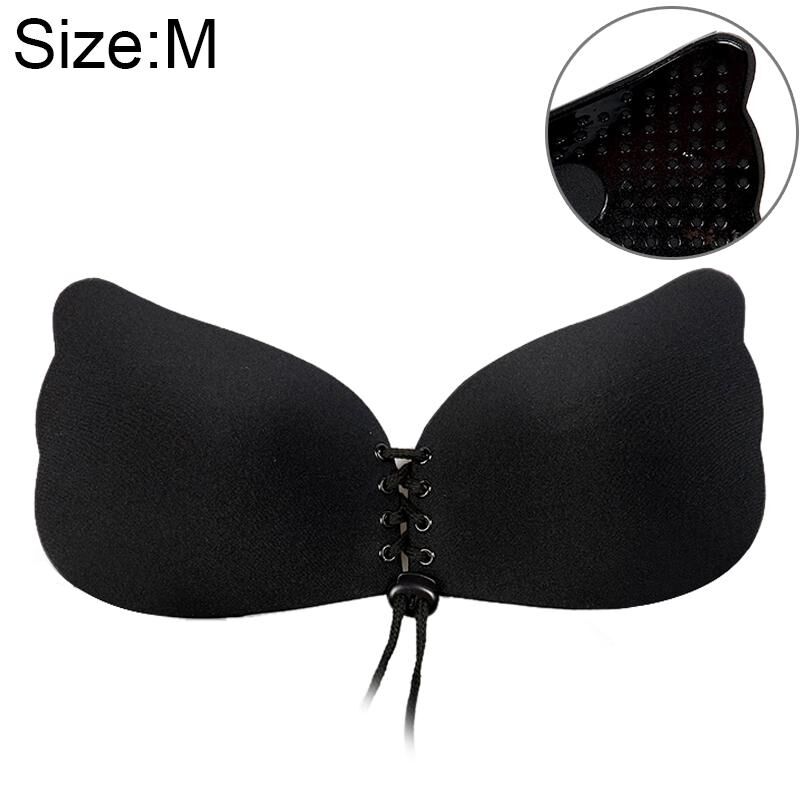 Γυναίκες αυτοκόλλητο Strapless Bandage Blackless Solid Bra σιλικόνης εσώρουχα αόρατο σουτιέν, μέγεθος: M (T Μαύρο)