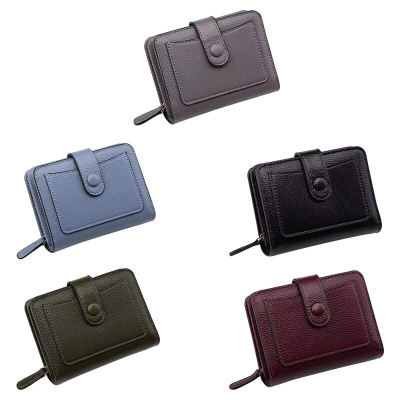 Women Short Litchi Texture Multi-card Buckle Wallet(Blue)