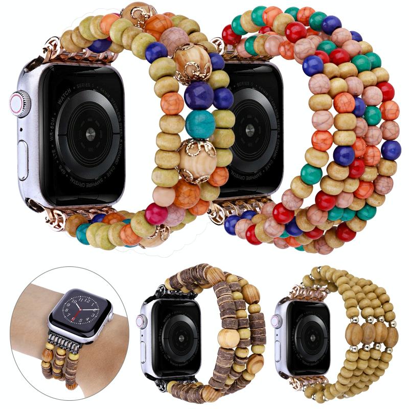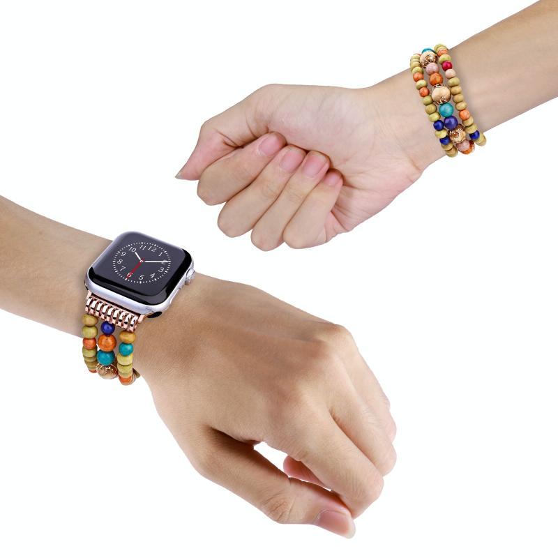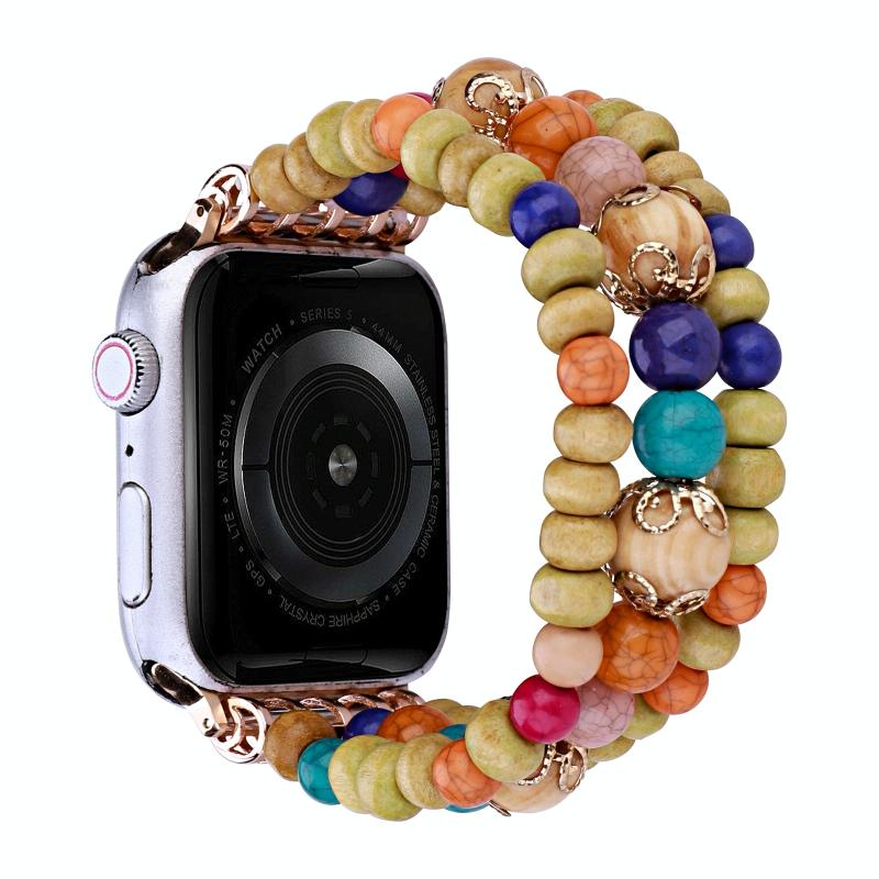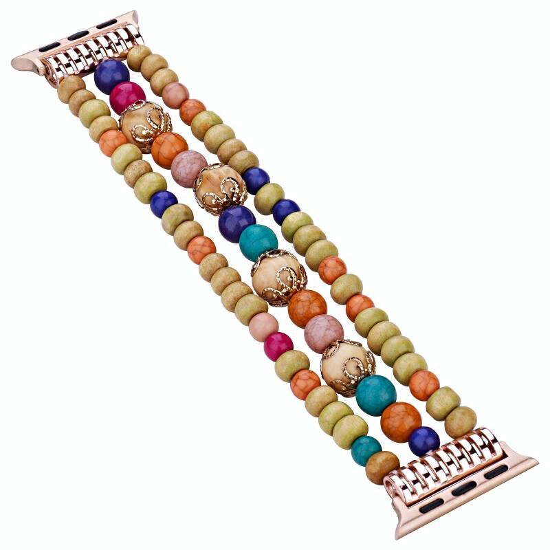 Λουρί για Apple Watch με ξύλινες χάντρες για Series 9&8&7 41mm / SE 3&SE 2&6&SE&5&4 40mm / 3&2&1 38mm (3 σειρές πολύχρωμες χάντρες)