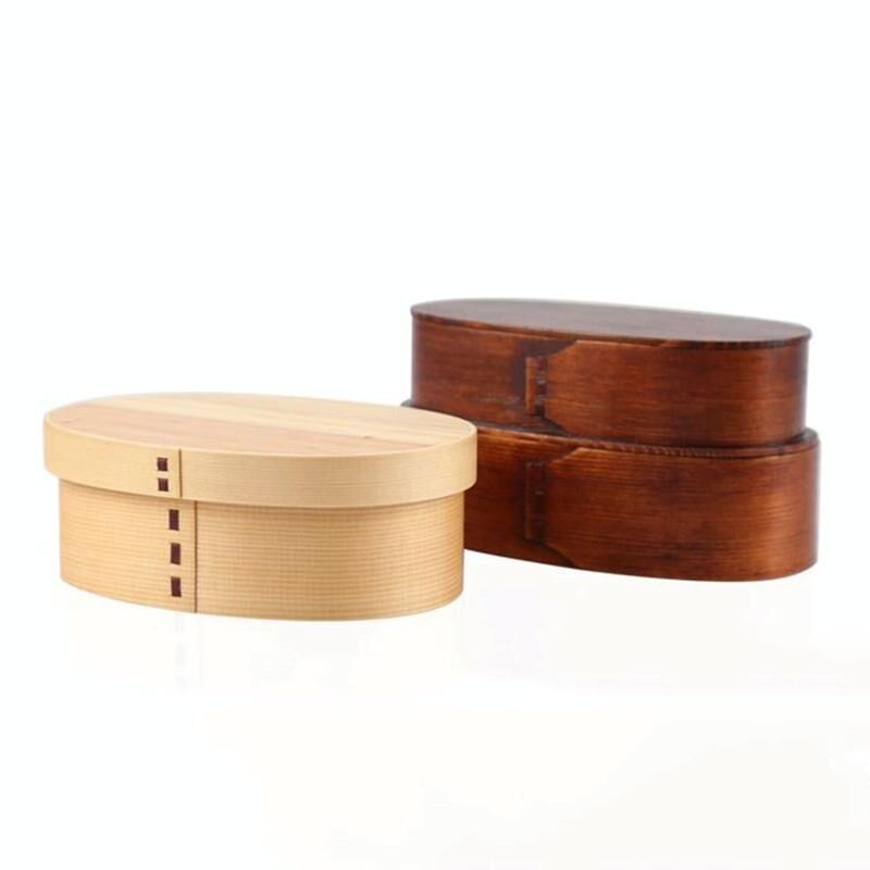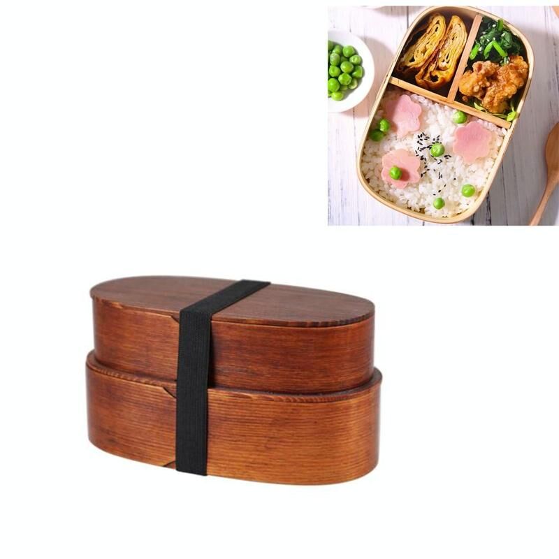 Επιτραπέζια Σκεύη Οικολογικής Προστασίας Ξύλου, Φορητό Κουτί Γεύματος, Bento Box, Στυλ: Διπλής Στρώσης (Χρώμα Βαφής)