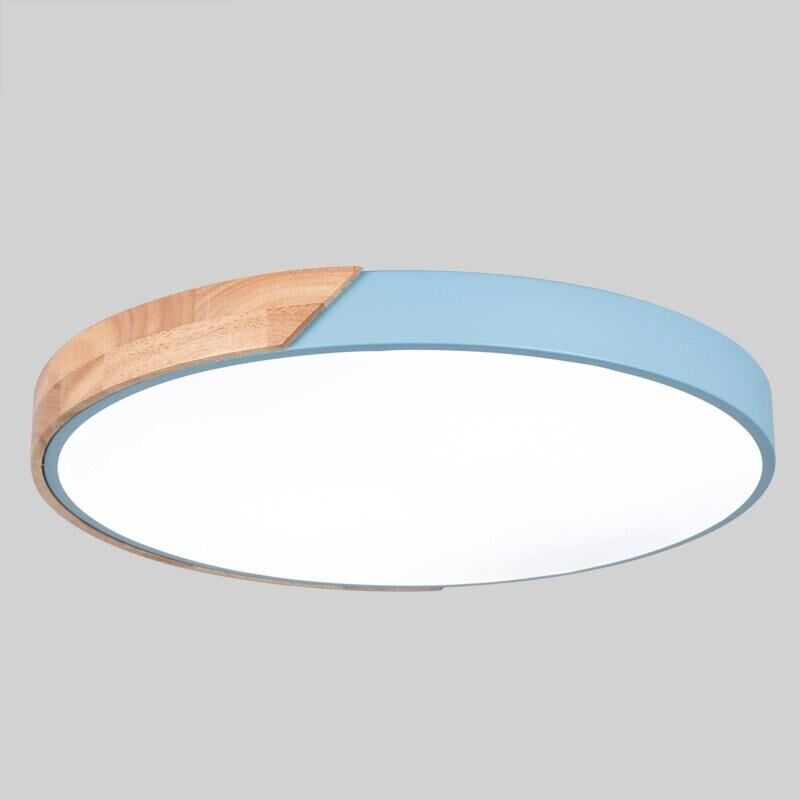 Ξύλο Μακαρόν LED στρογγυλό φωτιστικό οροφής, 3 χρώματα φωτός, μέγεθος: 23cm (μπλε)