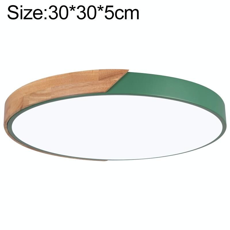 Ξύλινο μακαρόν LED στρογγυλό φωτιστικό οροφής, φως 3 χρωμάτων, μέγεθος: 30cm (πράσινο)