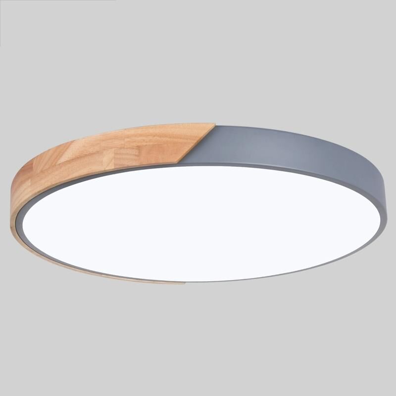Ξύλο Μακαρόν LED στρογγυλό φωτιστικό οροφής, 3 χρώματα φωτός, μέγεθος: 40cm (γκρι)
