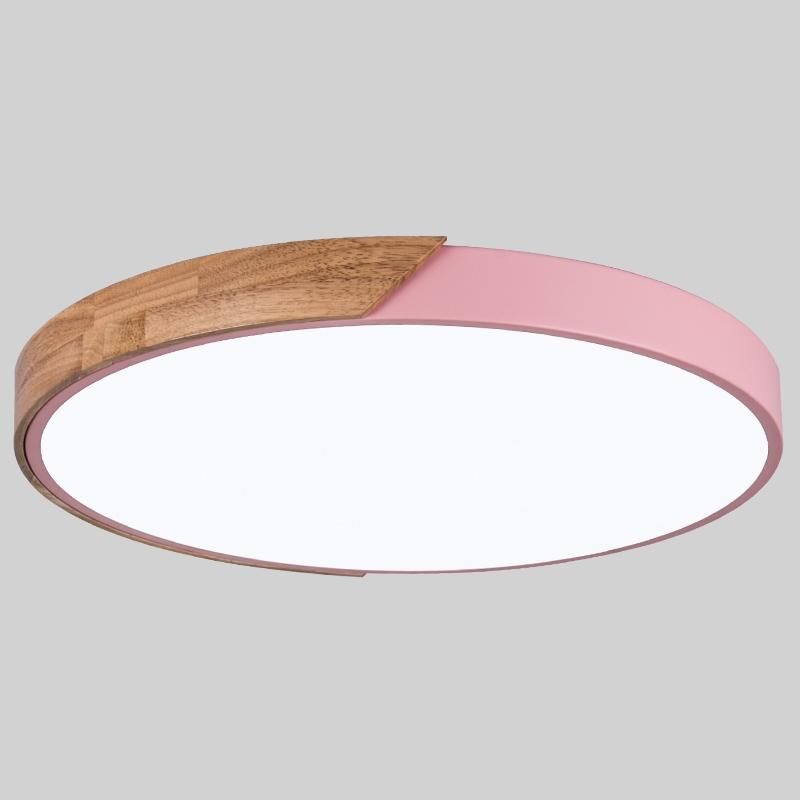 Ξύλινο μακαρόν LED στρογγυλό φωτιστικό οροφής, λευκό φως, μέγεθος: 23cm (ροζ)