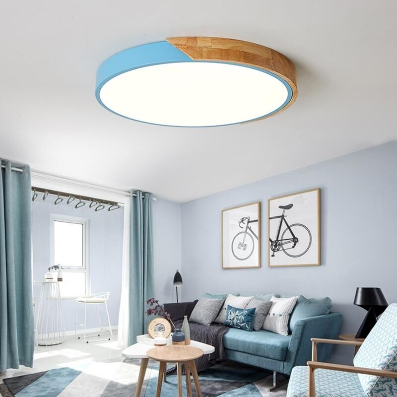 Ξύλινο Μακαρόν LED στρογγυλό φωτιστικό οροφής, λευκό φως, μέγεθος:30cm (χρυσό)