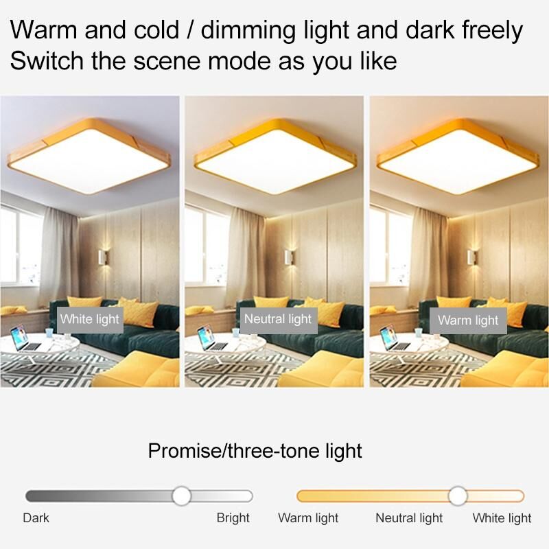 Ξύλο Μακαρόν LED τετράγωνο φωτιστικό οροφής, 3 χρώματα φωτός, μέγεθος: 30cm (χρυσό)