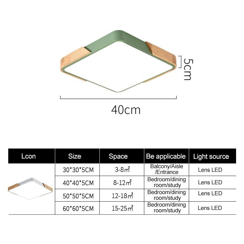 Ξύλο Μακαρόν LED τετράγωνο φωτιστικό οροφής, 3 χρώματα φωτός, μέγεθος: 40cm (χρυσό)