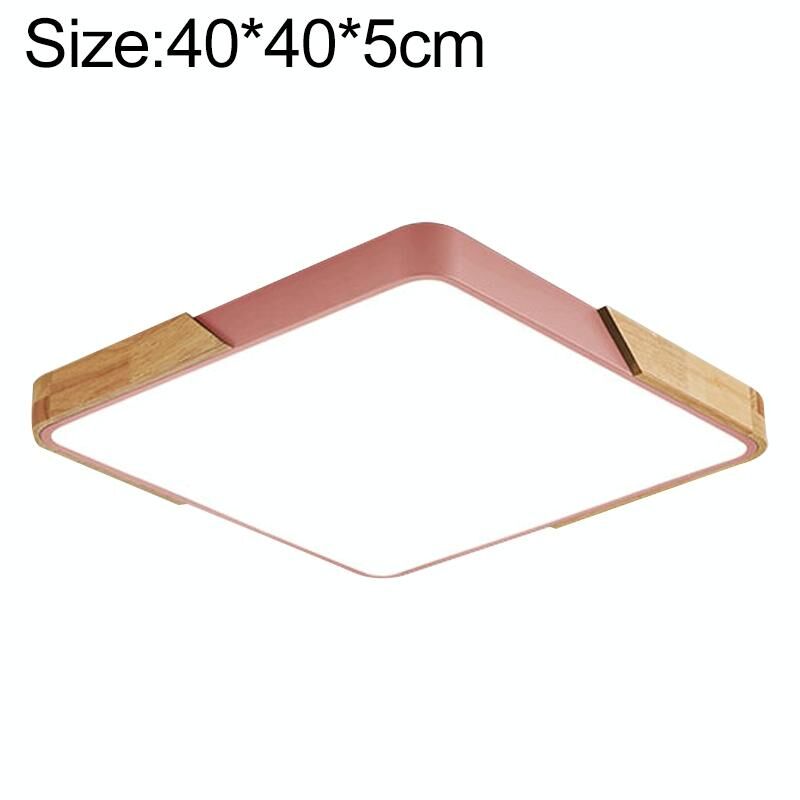Ξύλινο μακαρόν LED τετράγωνο φωτιστικό οροφής, λευκό φως, μέγεθος:40cm (ροζ)