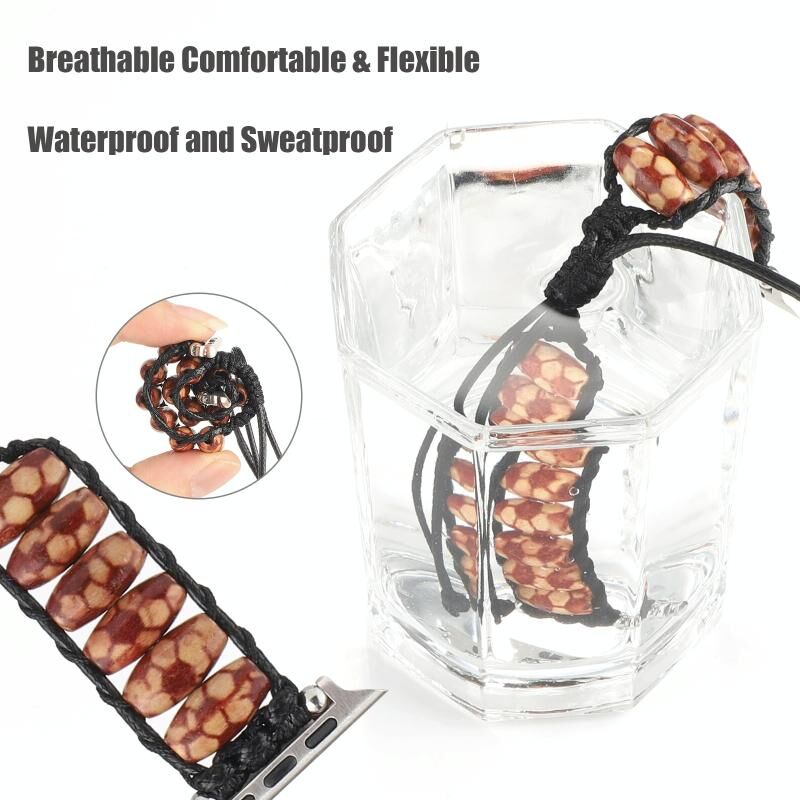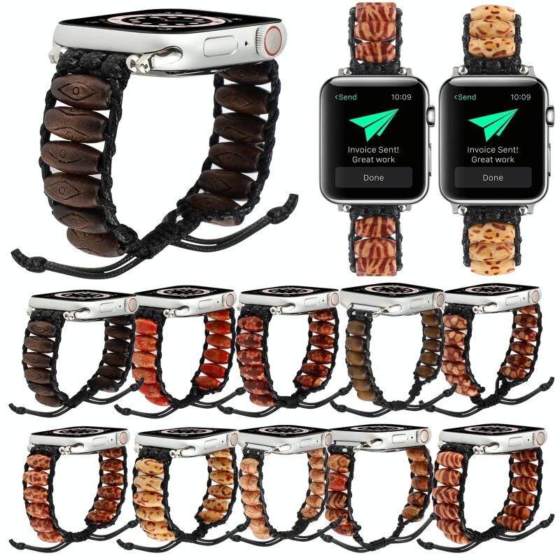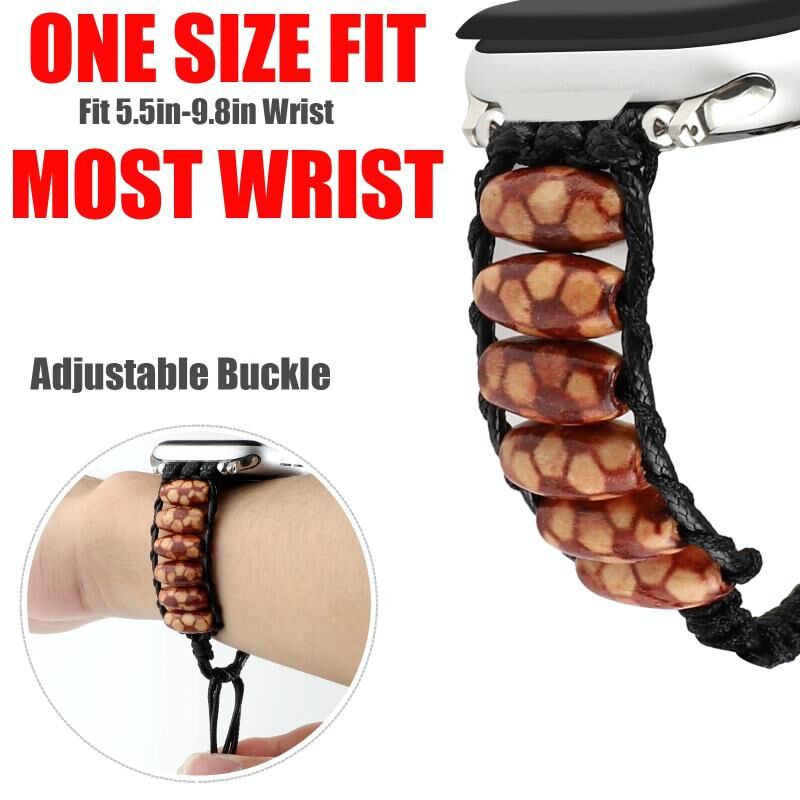 Λουρί για Apple Watch Ultra 49mm & Watch Ultra 2 49mm / Series 9 & 8 & 7 45mm / SE 3 & SE 2 & 6 & SE & 5 & 4 44mm / 3 & 2 & 1 42mm από ξύλινες χάντρες (Σχέδιο ποδοσφαίρου)