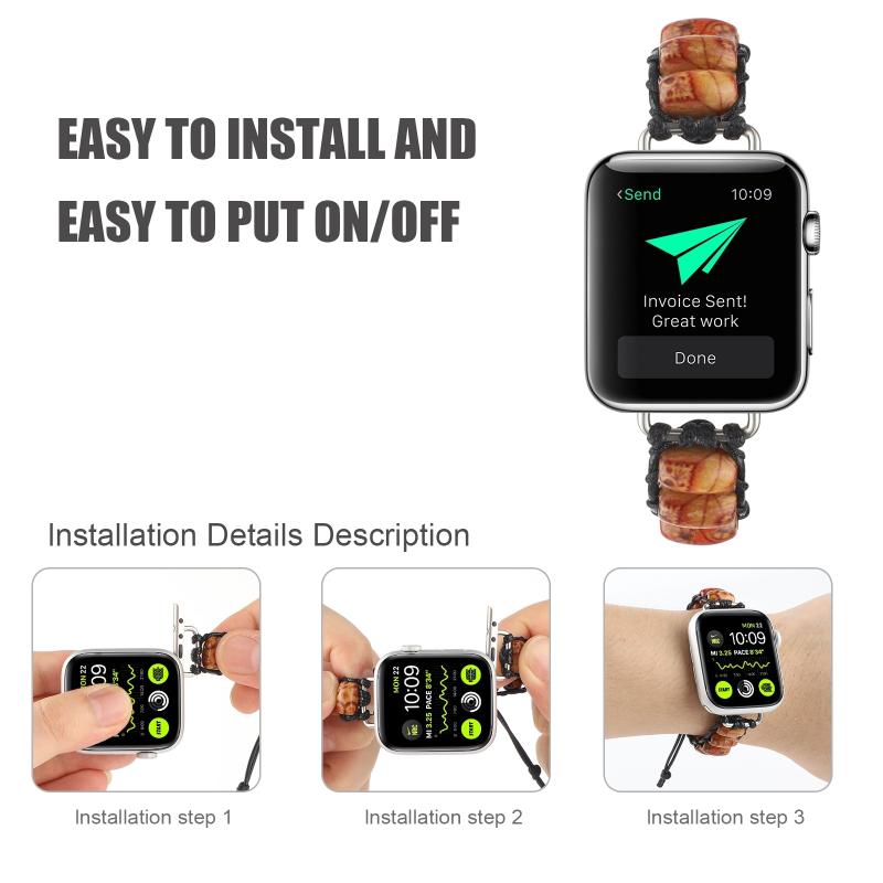 Λουρί για Apple Watch Ultra 49mm & Watch Ultra 2 49mm / Series 9 & 8 & 7 45mm / SE 3 & SE 2 & 6 & SE & 5 & 4 44mm / 3 & 2 & 1 42mm από Ξύλινες Χάντρες (Σχέδιο Ανοιχτό Καφέ)