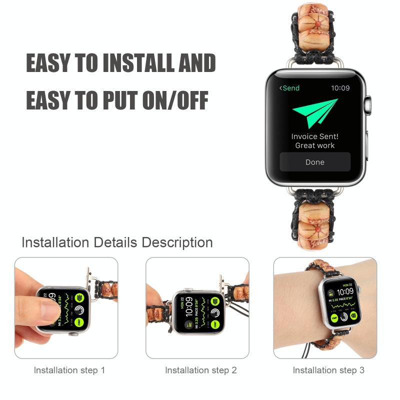 Λουρί για Apple Watch Ultra 49mm & Watch Ultra 2 49mm / Series 9 & 8 & 7 45mm / SE 3 & SE 2 & 6 & SE & 5 & 4 44mm / 3 & 2 & 1 42mm από Ξύλινες Χάντρες (Σχέδιο Ανοιχτό Καφέ)