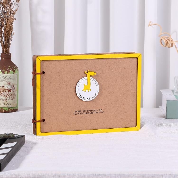 Wooden Loose-Leaf Album Children Growth Painting Album Couple DIY Handmade Gifts(Giraffe)