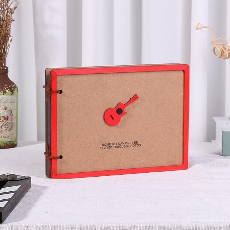 Wooden Loose-Leaf Album Children Growth Painting Album Couple DIY Handmade Gifts(Guitar)