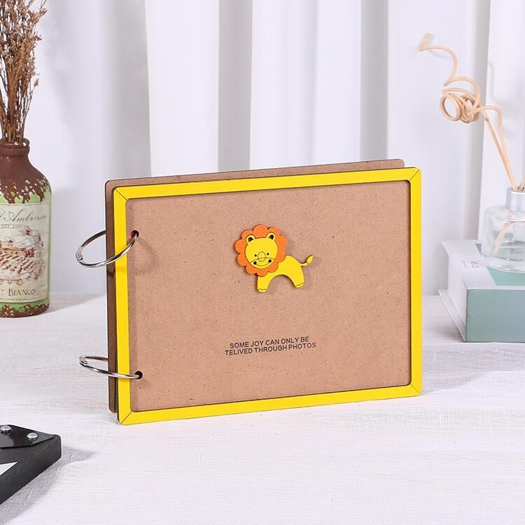 Wooden Loose-Leaf Album Children Growth Painting Album Couple DIY Handmade Gifts(Little Lion)